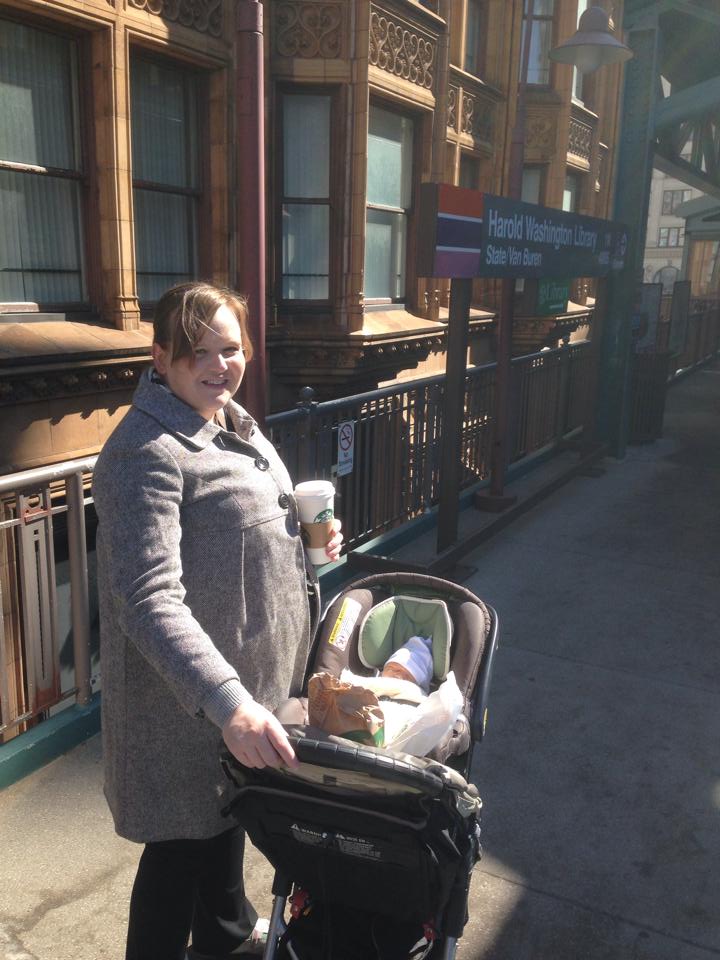 April 20, 2014 was bright and clear Saturday morning. We put the stroller together for the first time and walked Sam over to the Harold Washington Library pink line stop. We posted some pictures (leading to disbelief – “is that even SAFE?” from many quarters – nevermind that driving in a car at any time is orders of magnitude more dangerous than riding on an El train) and rode the pink line to the Illinois Medical District stop and walked to the blood testing lab that was open.